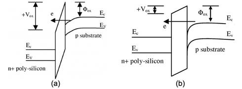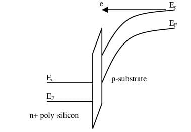 另一方面,當施加負柵極電壓時,來自 n+ 多晶硅柵極的電子隧道進入或穿過 SiO 2層,從而產(chǎn)生柵極電流,如圖 2(c) 所示。