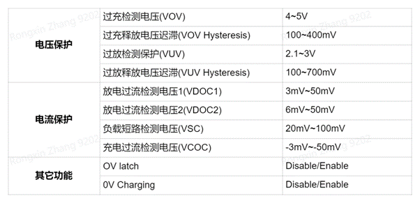 SC5618 系列芯片支持過壓保護(hù)(OVP)、欠壓保護(hù)(UVP)、一級放電過流保護(hù)(DOC1)、二級放電過流保護(hù)(DOC2)、短路保護(hù)(SC)、充電過流保護(hù)(COC)。