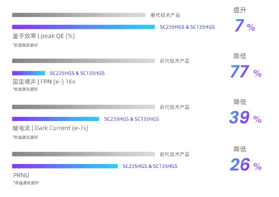 在SmartGS®-2 Plus先進(jìn)技術(shù)加持下,SC235HGS和SC135HGS峰值量子效率(peak QE)可達(dá)90%,與前代技術(shù)產(chǎn)品相比,提升了約7%。即使在低光照工業(yè)環(huán)境中,新產(chǎn)品的高QE性能仍然能夠幫助機(jī)器視覺相機(jī)準(zhǔn)確地檢測和測量目標(biāo),高效解決自動(dòng)化流水線視覺信息采集難題。