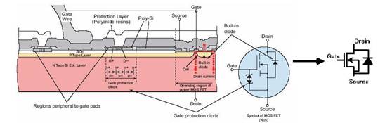 MOS管原理圖上可以看到,漏極和源極之間有一個(gè)寄生二極管。這個(gè)叫體二極管,在驅(qū)動(dòng)感性負(fù)載(如馬達(dá)),這個(gè)二 極管很重要。順便說(shuō)一句,體二極管只在單個(gè)的MOS管中存在,在集成電路芯片內(nèi)部通常是沒(méi)有的。下圖是MOS管的構(gòu)造圖,通常的原理圖中都畫(huà)成右圖所示的樣子。(柵極保護(hù)用二極管有時(shí)不畫(huà))