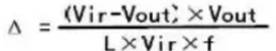 上圖是開關電源電感L內(nèi)的電流波形,其紋波電流△I可由下式算出: