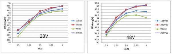圖5:28V和48V的負(fù)載效率曲線