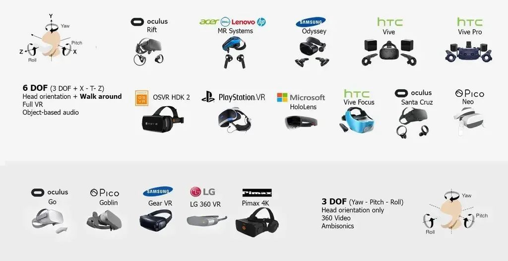 典型的3自由度與6自由度XR產(chǎn)品(來源:Raddit)