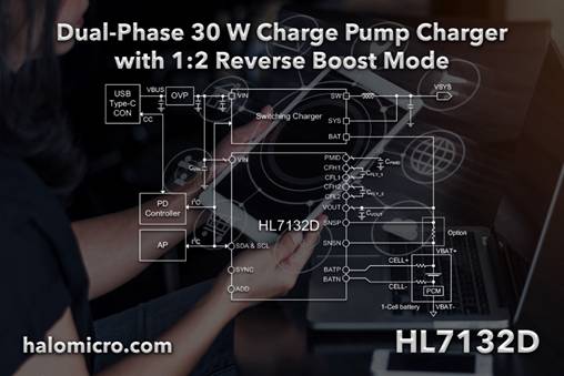 HL7132D 具有1:2反向升壓模式的新型雙相30W電荷泵充電芯片