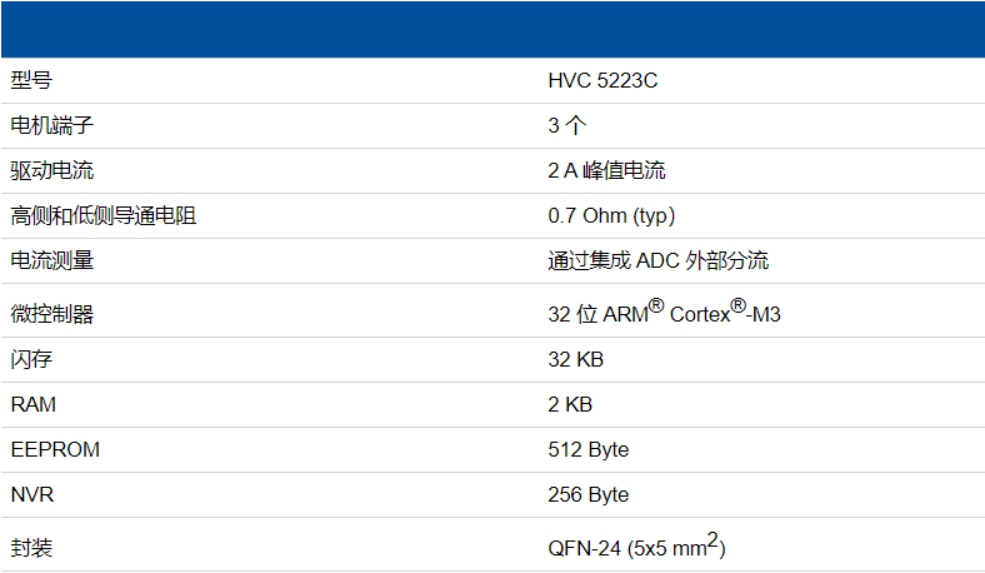 TDK 株式會社 正在擴(kuò)大其 Micronas 嵌入式電機(jī)控制器系列 HVC,并推出 HVC 5223C。這是一款經(jīng)認(rèn)證 的汽車級一級產(chǎn)品,全集成電機(jī)控制器,可驅(qū)動峰值相電流為 2 A 的小型有刷(BDC)或無刷(BLDC)電機(jī)。HVC 5223C 采用緊湊型 5x5 平方毫米 24 針 QFN 封裝,在功能上與 HVC 5222C 引腳兼容,HVC 5222C具備1A峰值電流能力。樣品現(xiàn)可供客戶評估。