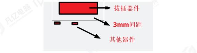 1)常規(guī)后焊器件(接插件),同層布局時(shí),器件保證和接插件1.5mm及以上間距,背面布局器件時(shí),保證至少3mm及以上間距要求。插拔器件或板邊連接器周圍3mm范圍內(nèi)盡量不布置SMD器件,以防止連接器插拔時(shí)產(chǎn)生的應(yīng)力損傷器件,如圖1-4所示。