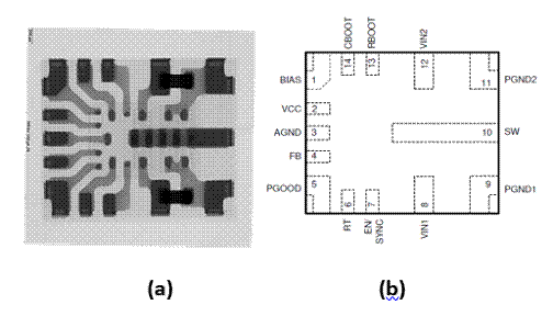 LMQ61460-Q1 降壓靜音轉(zhuǎn)換器圖 2 X 射線圖像顯示了帶有集成電容器 (a) 的 LMQ61460-Q1 降壓靜音轉(zhuǎn)換器,您可以將其與引腳排列參考 (b) 進行比較。資料德州儀器雖然 EMI 確實給汽車應(yīng)用帶來了挑戰(zhàn),但如果設(shè)計工程師遇到電路板布局限制,他們也并非沒有選擇。有很多方法可以應(yīng)對這一挑戰(zhàn),從戰(zhàn)略器件引腳排列到低電感封裝、轉(zhuǎn)換速率控制、擴頻和集成電容器等集成功能。