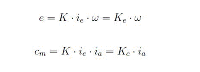 Ke 和 Kc 是電機的兩個常數(shù),稱為橢圓常數(shù)和扭矩常數(shù),ω 是角速度。