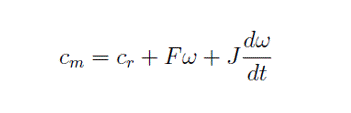 機械負載的行為幾乎總是非線性的。負載的線性模型可以通過將電機扭矩 cm 等于三個參數(shù)之和來獲得:施加在電機軸上的負載扭矩,根據(jù)摩擦系數(shù) F 與電機旋轉速度成比例的參數(shù),以及與電機轉速對轉動慣量J的導數(shù)成正比的參數(shù);那是: