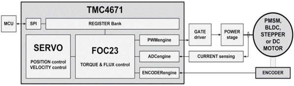 TMC4671是一款完全集成伺服控制芯片,為直流無刷電機(jī)、永磁同步電機(jī)、2相步進(jìn)電機(jī)、直流有刷電機(jī)和音圈電機(jī)提供磁場定向控制。