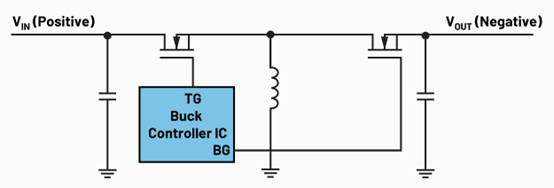 圖1.利用降壓開關(guān)穩(wěn)壓器生成負(fù)電壓的反相降壓-升壓拓?fù)?br>