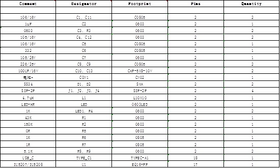 7、IU5207/IU5208 DEMO板物料清單