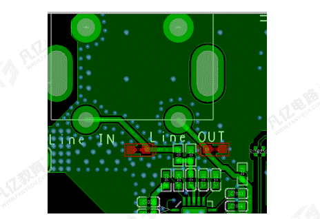 6、Audio in和Audio out不用控制阻抗,走線需要加粗至15mil,全程包地處理,間隔300mil必須打一個地過孔;