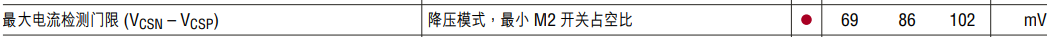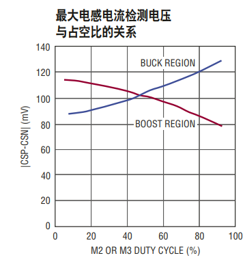 VRSENSE(MAX,BOOST,MAX) 是最大占空比條件下升壓區(qū)中的最大電流檢測電壓 (見 “RSENSE 的選擇和最大電流” 部分)即:VRSENSE(MAX,BOOST,MAX) ≅107mV