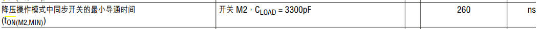 式中的 tON(M2,MIN) 為 260ns (典型值,見下圖 “電特性”)