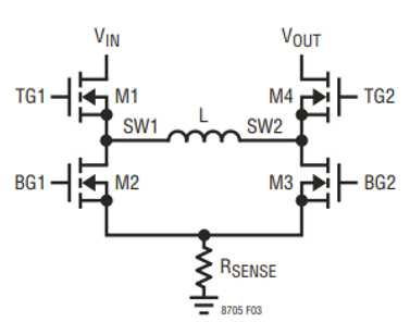 選擇的 RSENSE 電阻必須小于降壓和升壓中的最大 RSENSE 阻值。