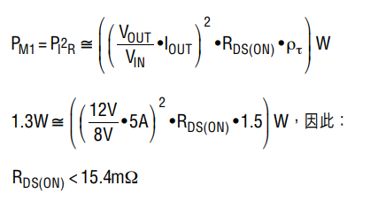 由于升壓區(qū)中的最大 I2R 功率耗散出現(xiàn)在 VIN 最小之時,因此我們可以采用下式來確定升壓區(qū)的最大可容許 RDS(ON):