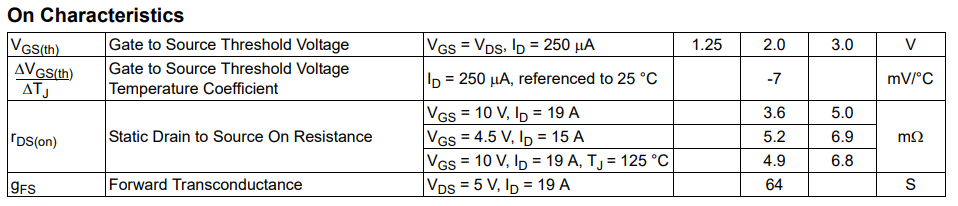 Onsemi FDMS7672 可滿足該規(guī)格,其在 VGS = 4.5V 的條件下具有約 6.9mΩ 的最大 RDS(ON) (在 125°C 時約為10mΩ)。檢查最大 VIN 和最小 VOUT 條件下降壓區(qū)中的功率耗散: