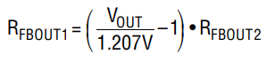 LT8705的輸出電壓利用一個謹(jǐn)慎地布設(shè)在輸出電容兩端的外部反饋?zhàn)栊苑謮浩鱽碓O(shè)定。由誤差放大器 EA4 將產(chǎn)生的反饋信號 ( FBOUT ) 與內(nèi)部高精度電壓基準(zhǔn) (典型值1.207V) 進(jìn)行比較。輸出電壓由下式給出: