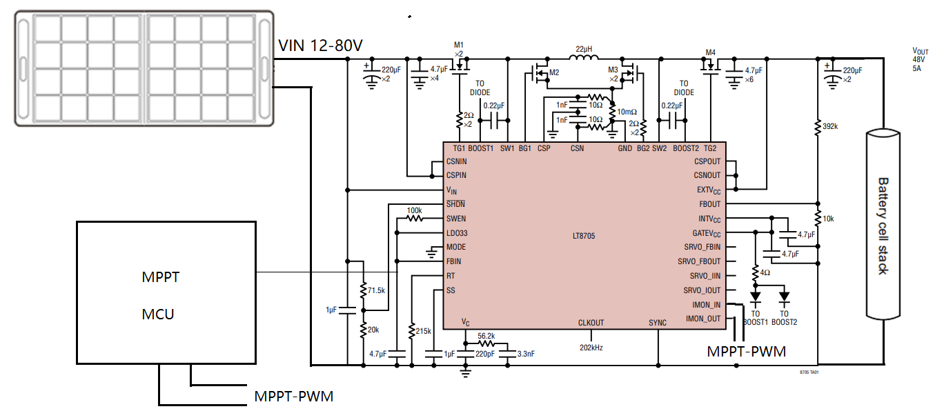 今天我們要講到的是,ADI推出的LT8705降壓 - 升壓控制器 提供了一種極好的方法來解決工作電壓高達(dá)80V的系統(tǒng)中的可變性問題,因?yàn)樗梢越邮?.8至80V的輸入電壓,并在輸出端提供1.3V至80V的電壓,可以解決當(dāng)下流行的4塊光伏板串聯(lián)輸入充電(電壓高達(dá)72V)與12V車載充電的寬范圍輸入轉(zhuǎn)換的問題,這使得設(shè)計(jì)能夠與眾多太陽能電池板設(shè)備連接,通過運(yùn)行一個程序來實(shí)現(xiàn)最大功率點(diǎn)跟蹤(MPPT) 和最大限度地利用太陽能電池轉(zhuǎn)換的能量來進(jìn)一步改進(jìn)系統(tǒng)。