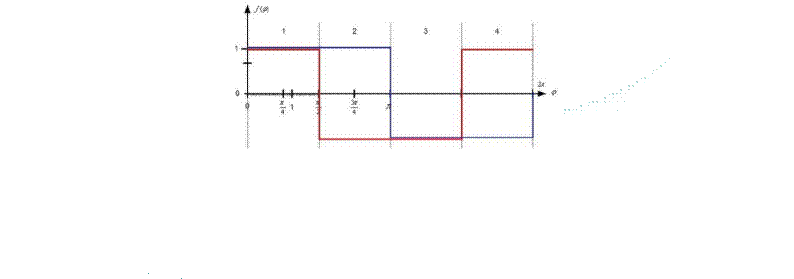 典型的步進(jìn)電機(jī)有50個(gè)極(Poles),就是200個(gè)整步(Full Steps),也就是整步情況下每步1.8° 角度,電機(jī)旋轉(zhuǎn)一周需要360°。但是也有些步進(jìn)電機(jī)的步距角更小比如整步需要800步的。起初,這些步進(jìn)電機(jī)被用作整步或者半步模式下,矢量電流提供給電機(jī)線圈A(藍(lán)色) 和線圈B(紅色) 矩形曲線圖。描述了整個(gè)一個(gè)周期360°的曲線。在圖3和圖4中很明顯看到電機(jī)線圈在90°換相點(diǎn)處線圈電流要 么是最大電流(full power) 要么是沒(méi)有電流。