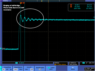 圖 1 – 由于 L-C 諧振而在電機相位輸出端產(chǎn)生振鈴