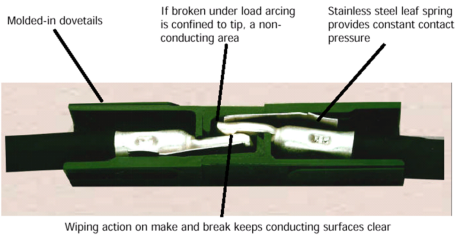 平擦式技術(shù)能夠?qū)崿F(xiàn)了更低的接觸電阻,并且能夠在大電流應(yīng)用中保持穩(wěn)定的傳輸(安德生SB350連接器最高可承載500安培大電流),斷開(kāi)過(guò)程中的擦拭動(dòng)作亦能夠清潔觸件表面。