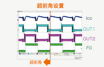 為了獲得最大扭矩,可相對于霍爾信號調(diào)整驅(qū)動器輸出信號的相位,以保證磁鐵(轉(zhuǎn)子)磁場的相位和線圈的相位成90度。超前角側(cè)的超前角最大可設(shè)為22.5度。