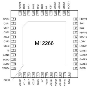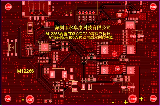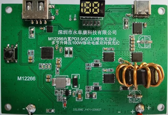 M12266是一款面向多串電芯大功率移動(dòng)電源應(yīng)用的專用SOC,集成了同步升降壓電壓變換器、電池充放電管理模塊、顯示模塊、電量計(jì)算模塊,提供最大100W輸入/輸出功率,支持PD3.0、QC3.0、AFC、FCP、 SCP、BC1.2 DCP 等主流快充協(xié)議。芯片采用QFN-48封裝,配合極簡(jiǎn)的外圍電路,即可組成100W多口移動(dòng)電源。