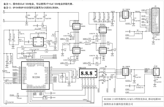 由于常見的便攜式電子設(shè)備都采用鋰電池供電,而不同設(shè)備的電采用的鋰電池串?dāng)?shù)不同。多節(jié)鋰電池充放電管理一直是一個(gè)棘手的問題。Type-C要統(tǒng)一充電接口,為不同鋰電池串?dāng)?shù)的電子設(shè)備進(jìn)行充電,對(duì)充電芯片的要求是內(nèi)置快充協(xié)議的同時(shí),還需要實(shí)現(xiàn)對(duì)不同設(shè)備鋰電池組的充放電管理。為此,深圳市永阜康科技有限公司現(xiàn)在大力推廣一顆內(nèi)置PD3.0/QC3.0等主流快充協(xié)議、3-6多節(jié)鋰電池移動(dòng)電源雙向100W快充IC-M12266,配合極簡(jiǎn)的外圍電路,即可實(shí)現(xiàn)常見便攜電子設(shè)備的Type-C快充需求。
