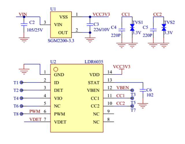 我們了解到一顆名為L(zhǎng)DR6035的PD協(xié)議芯片, 就是專(zhuān)為單Type-C接口可充電可放電設(shè)計(jì)的,作為一顆DRP芯片,在不同的使用場(chǎng)景下,通過(guò)CC通訊識(shí)別插入的設(shè)備不同會(huì)自動(dòng)切換DFP/UFP,這使得移動(dòng)電源省去了多個(gè)接口的成本,產(chǎn)品設(shè)計(jì)也可以更簡(jiǎn)約。