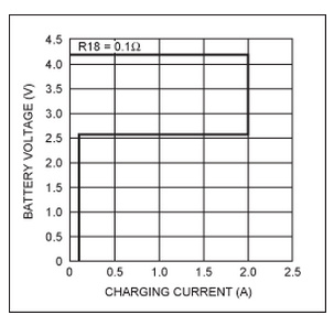 低于 2.6V 的區(qū)域需要不同的充電技術(shù)。如果嘗試對(duì)放電電壓低于 2.6V 的電池充電,充電器會(huì)施加低值(“調(diào)節(jié)電流”)充電電流,直到電池達(dá)到 2.6V 電平。這是鋰離子電池過(guò)度放電時(shí)的行為所必需的安全機(jī)制。當(dāng) VBATT < 2.6V 時(shí)強(qiáng)制快速充電電流可能會(huì)導(dǎo)致電池進(jìn)入不可逆的短路狀態(tài)。