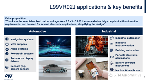 L99VR02J汽車級低壓差線性穩(wěn)壓器可用于多種電子應用,如導航系統(tǒng),MCU電源,音頻系統(tǒng),動力系統(tǒng),汽車顯示器驅動,傳感器(例如相機傳感器),便攜式電子應用,電池供電儀器,醫(yī)療保健等等。