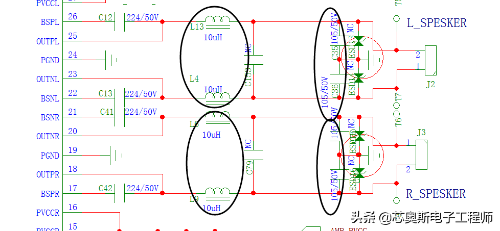 是不是有小伙伴在拆開音頻,或者看見別人設(shè)計的板子,喇叭端子那里要么都寫磁珠,要么有些電感,是的,你沒有看錯。如下圖,小編給你說明一下它們的作用