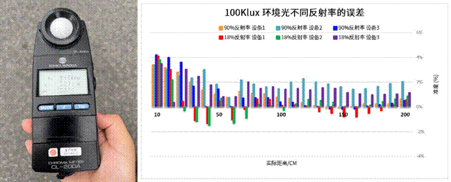 ND06傳感器具有出色的抗戶外強光表現(xiàn),其主要體現(xiàn)在100Klux的戶外強光環(huán)境下,還能保持高精度測距。同時,其性能也不受不同材質(zhì)的影響。