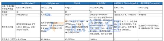 圖注:國(guó)內(nèi)幾家主要人形機(jī)器人的關(guān)節(jié)電機(jī)對(duì)比(不完全統(tǒng)計(jì),芯查查制表)