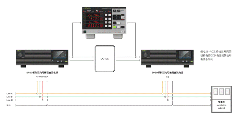 車用氫燃料電池升壓DC-DC測試是指對汽車使用的氫燃料電池升壓裝置系統(tǒng)進行轉(zhuǎn)換效率的測試。燃料電池電動汽車的核心就是燃料電池的輸出供電。燃料電池將氫氧轉(zhuǎn)變?yōu)榈蛪弘娔埽?通過 DC-DC 升壓后給動力電池充電同時給電機控制器供電驅(qū)動電機運轉(zhuǎn),在實際量產(chǎn)測試時由于功率密度高(一般為 60-120kw 電堆)、電壓高(燃料電池直接輸出 200V 左右,DC-DC 升壓后達到 600V 左右)、電流高(200A-300A 左右),測試一直是個難題。