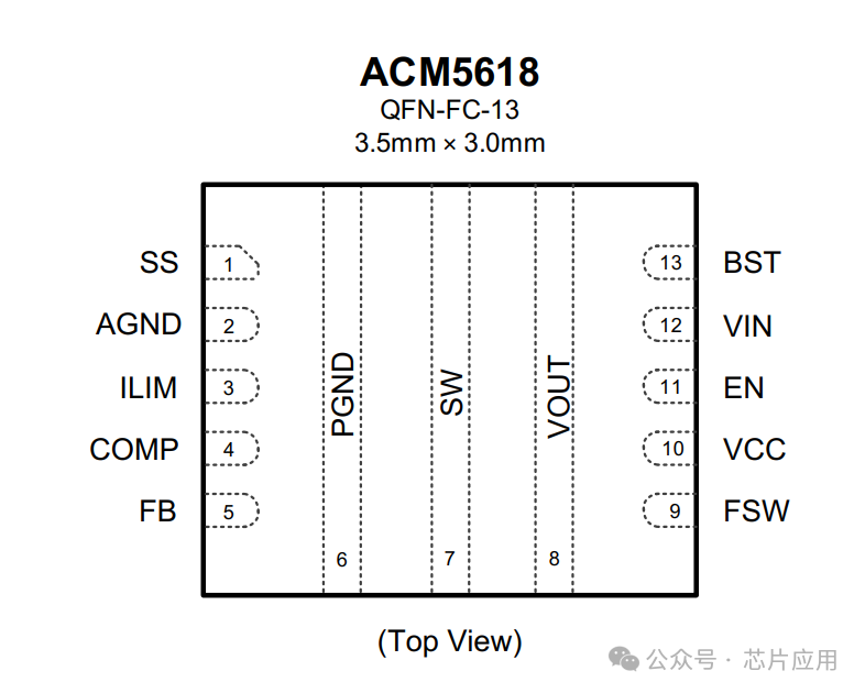 ACM5618是一款高效率的DCDC同步升壓芯片,輸入電壓2.7-17V,輸出4.5-17V,芯片的主要特點(diǎn)是導(dǎo)通阻抗低,效率高,開關(guān)電流可以達(dá)到15A。不用加散熱片就可以實(shí)現(xiàn)大功率升壓輸出。ACM5618全集成方案,外部無(wú)需MOS和肖特基,外圍簡(jiǎn)單,最高效率96%,即使在單節(jié)電池升壓到12V的應(yīng)用下,效率也可以達(dá)到91%?梢詰(yīng)用于音響系統(tǒng),電子煙,便攜打印機(jī),便攜電機(jī)類產(chǎn)品等。