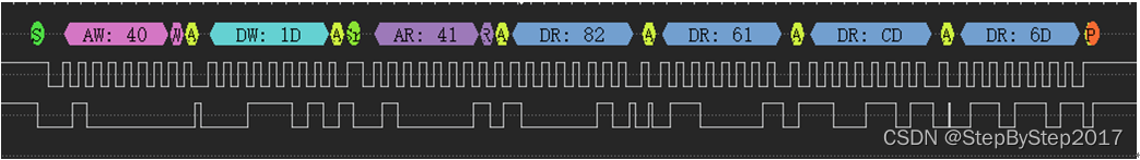 對于該示例,該命令為I2C_Read(0x40, 0x1D, 0x 41, [0x82, 0x61, 0xCD, 0x6D])