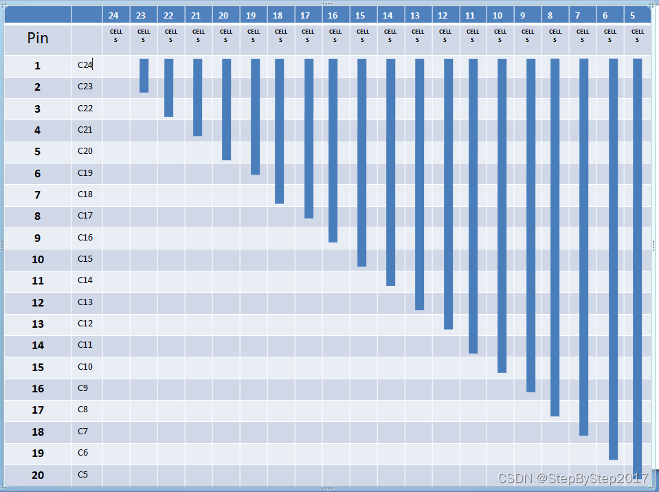 集澈DVC11系列分別有DVC1124,DVC1117,DVC1114,DVC1110等4個(gè)芯片,都是4串起步,4-24,4-17,4-14,4-10串,這里主要說明DVC1124減少串?dāng)?shù)的接法。