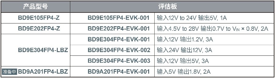“BD9E105FP4-Z / BD9E304FP4-LBZ / BD9A201FP4-LBZ”