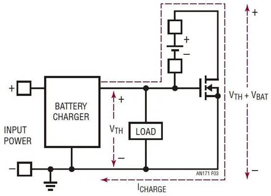 請(qǐng)注意,不論什么情況,電池充電器和負(fù)載電壓都不會(huì)出現(xiàn)負(fù)電壓傳送。