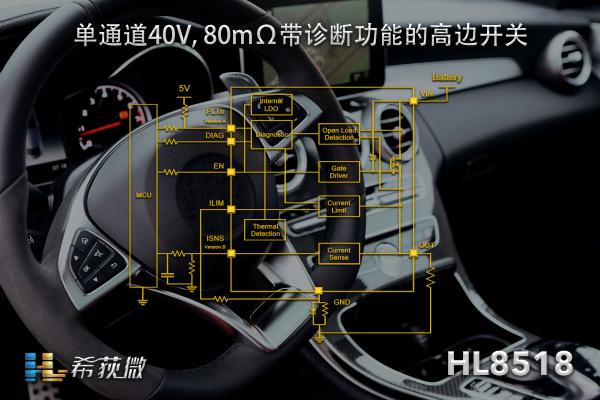 希荻微積極響應(yīng)市場(chǎng)需求,深耕汽車(chē)電源市場(chǎng),持續(xù)研發(fā)并推出DC/DC、LDO、高邊開(kāi)關(guān)等多個(gè)品類(lèi)的汽車(chē)級(jí)芯片。最近,希荻微推出一款80mΩ Rds(on)帶電流檢測(cè)模擬反饋的汽車(chē)級(jí)單通道高邊開(kāi)關(guān)芯片——HL8518,憑借極低功耗、高控制精度和高可靠性的優(yōu)異性能,獲得眾多汽車(chē)品牌廠商和一級(jí)供應(yīng)商的青睞。該芯片在惡劣的汽車(chē)環(huán)境下依然能保持性能穩(wěn)定,有效提升汽車(chē)電源控制系統(tǒng)的安全性和可靠性。