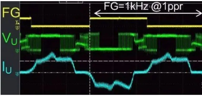 使用的是SVPWM波,輸出的是3相正弦波電壓,電機相電流為正弦波電流?梢哉J為在一個電氣周期內(nèi)進行了多次的連續(xù)變化換向,無換相電流突變。正弦波控制相比方波控制,其轉矩波動較小,電流諧波少,控制起來感覺比較“細膩”。