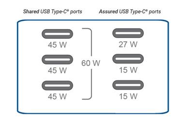 圖 1: 多個端口之間的 USB PD 功率共享