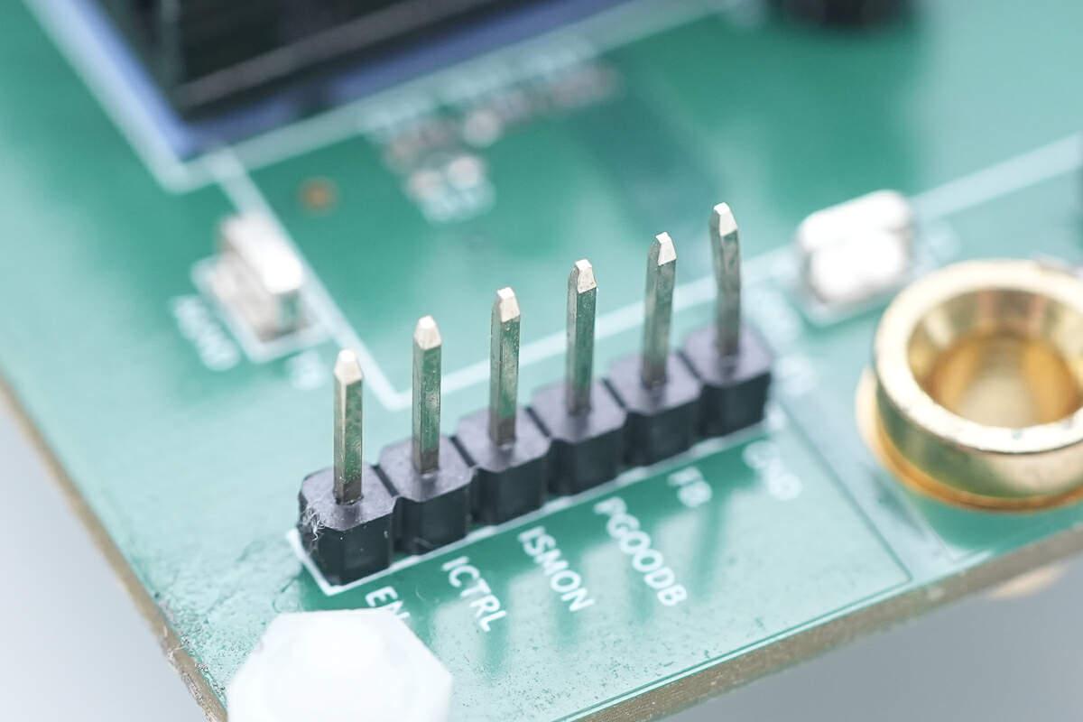 用于連接外部電路進行功能設(shè)定的排針特寫。