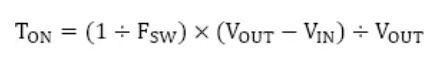 首先,要想確定低邊開關(guān)的導(dǎo)通時(shí)間,需要根據(jù)開關(guān)頻率Fsw計(jì)算出一個(gè)周期的時(shí)間,并根據(jù)VIN、VOUT的升壓比計(jì)算出導(dǎo)通時(shí)間的比率,最終計(jì)算出導(dǎo)通時(shí)間TON。