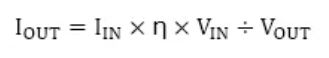 當(dāng)VIN、VOUT、Fsw條件恒定時(shí),紋波電流IRIPPLE與電感值L成反比。電感值不像電阻那樣能以E24之類的精度標(biāo)準(zhǔn)來選型,只能以E6程度的標(biāo)準(zhǔn)來選型,因此需要選擇紋波電流接近目標(biāo)值的電感器。最大開關(guān)電流減去按所選電感計(jì)算出的紋波電流IRIPPLE的1/2后得到的值,即為最大輸入電流IIN。最大輸出電流IOUT與轉(zhuǎn)換效率η和升壓比VOUT÷VIN成反比,其計(jì)算公式如下: