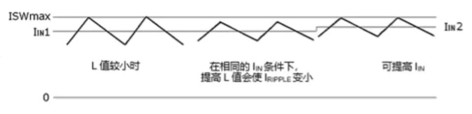 ・紋波電流的大小會隨電感值而變化,電感值越大,最大輸出電流就越大。