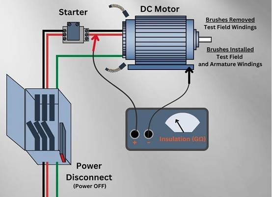 圖4.直流電機(jī)的典型兆歐表測試布局。圖片由控制自動(dòng)化工程團(tuán)隊(duì)提供